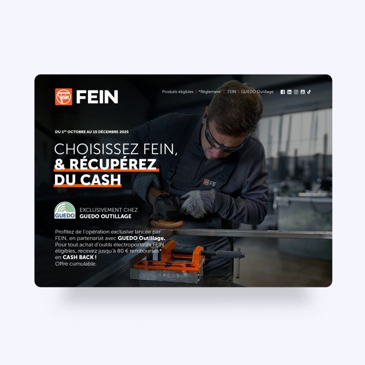 Plateforme de Cash-Back pour FEIN Client FEIN France CA : 15 M€ Projet Opération commerciale Concept créatif Mécanique globale Web app Site web responsive Emails transactionnels Back office & data Descriptif du projet Agile Interactive a conçu et opéré la plateforme digitale de l’opération « CASH BACK FEIN » en y intégrant les technologies les […]